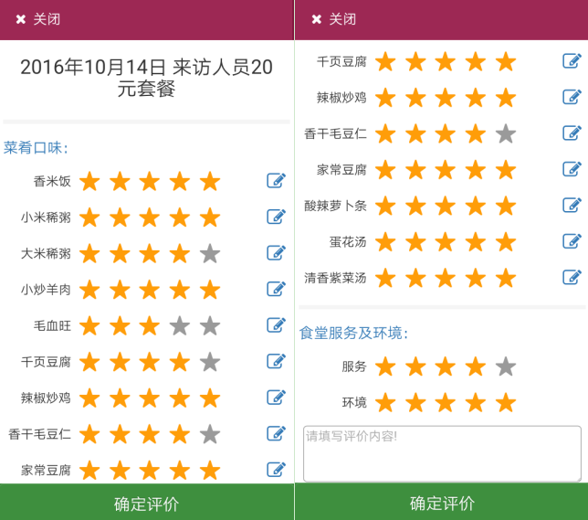 单位食堂管理软件支持手机APP或微信等终端进行在线点评,点评内容包括菜品口味,用餐环境,食堂服务等多个维度,员工可以为食堂做的饭菜点赞或者差评,后台可自动汇总点评数据,指导食堂进行改进,形成良性循环,让员工更愿意在食堂就餐。