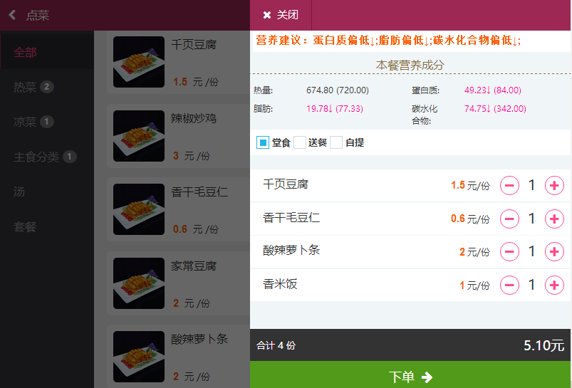有了食堂订餐系统,单位食堂就可以运用更符合移动互联时代潮流的在线食堂菜谱让职工对食堂菜谱改观并且开始喜欢上单位食堂。