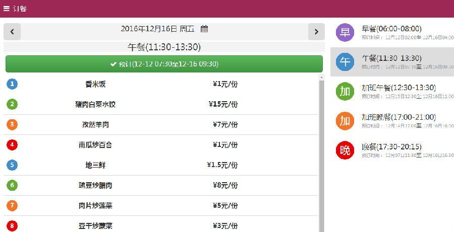 1、自由消费。如果食堂实行自由消费模式,自助单点餐式是工作人员将单个菜肴按单独价位后发布菜谱,由就餐者自主地在app或者微信订餐时按自身的需要和就餐习惯选择喜欢的菜品进行下单,单位食堂管理系统的单点模式可以满足不同的就餐人员自主选择不同的菜品,可以选择在线饭卡、支付宝、微信支付后下单,也可以去食堂现场自由点餐后刷卡付费。