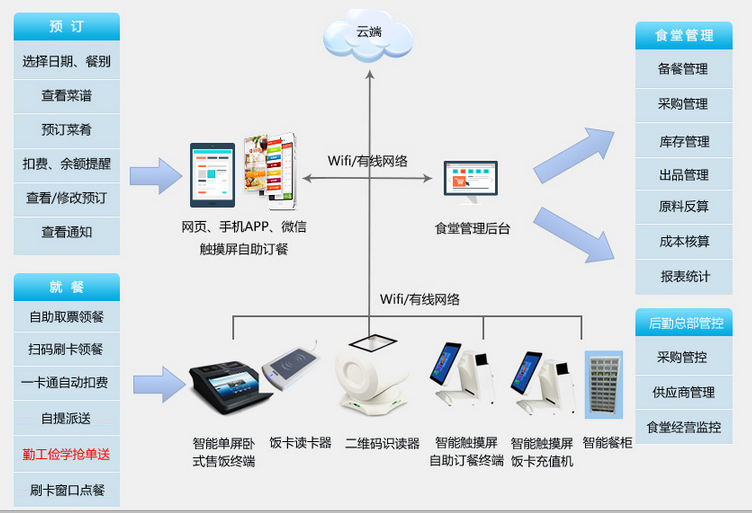 学校食堂通过运用现代化的食堂管理系统,可以真正从学生的就餐需求角度出发,提供可口的菜品,兼顾外卖服务,让学生自愿回归到食堂来。