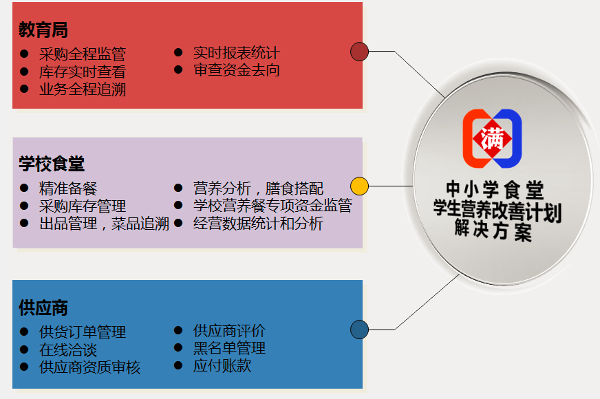 中学运用智能营养餐系统可以为学生合理搭配膳食。系统针对学生的基本情况(性别、年龄、身高、体重等),分析出需要补充的营养素及所需量,为中学生提供符合身体情况的个性化营养食谱。系统还可计算出学生的一日营养素推荐摄入量和身体质量指数,自动计算配平各种食物、菜谱的摄入量,配平过程快速准确,井且提供各种菜谱对各种营养素的贡献比例,为编制配餐提供科学、综合的参考依据,为中学生提供科学的营养餐。