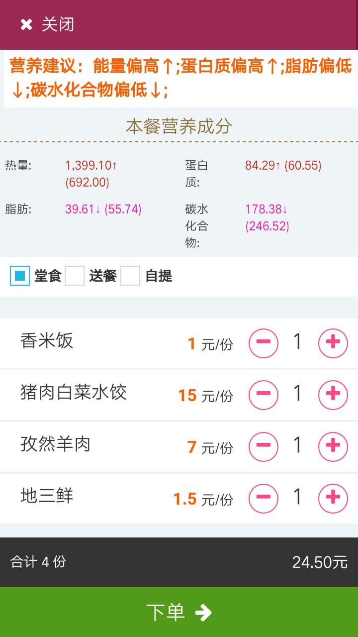 赛跑抢饭第一的男同学A,他可以在下课前在食堂系统客户端点单,选好今天要吃的饭菜。