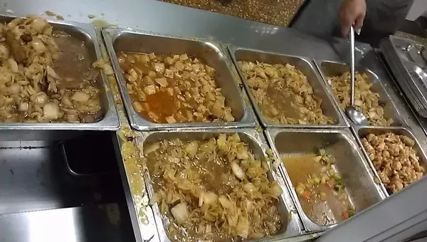 高速公路服务区餐食菜色鲜艳,味道可口,快速便捷的供餐服务,自动点餐机,后厨简单整洁,原材料全部配送,不设粗加工,门店外观统一。