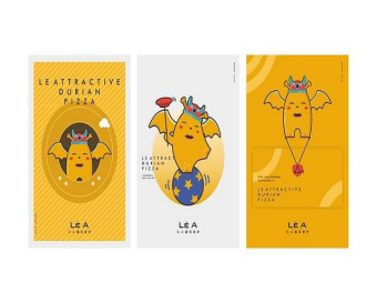乐A榴莲披萨的品牌包装通过对同一符号形象的反复应用,达到了增强品牌的传播度和辨识度的效果。同时通过slogan“榴莲很甜,你也是”的语言表达,将榴莲披萨的口味特征进行传播,让更多爱好者和非爱好者都能第一时间了解到乐A榴莲披萨的主打特色,达到紧密联想的效果。