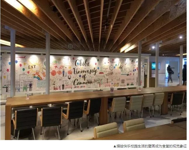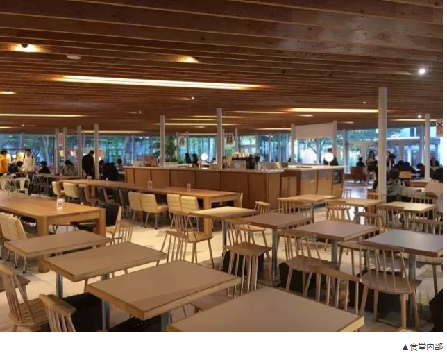 这是日本千叶商科大学的食堂,它是本地区文化、信息共享中心,它能激发学生创造热情,它是学生可以随时自由聚会的场所,这是可以感受自然的舒服空间,是悠然自得的平房,是学园的新地标。