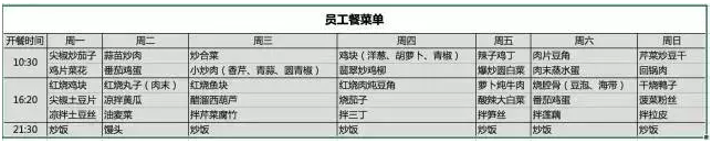 在这里,员工餐除了荤素搭配齐全以及每周一次的水果补足外,他们每周还能有 1 次吃菜单上食物的机会,这么做的好处有三点: