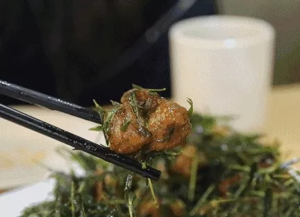 需要在茶叶堆儿里翻出来的茶香鸡,用的是可以直接吃的竹尖茶叶,茶香很好的去除了鸡肉的油腻,有种别样的滋味。