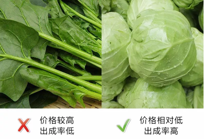 根据不同季节调整各季节时蔬类配料的占比,吃个,哦不,举个栗子,冬季菠菜的价格较高,而且出成率低,如果继续使用菠菜作为配料,当月毛利肯定吃紧。但如果将菠菜更换为冬季原料价格为2.4元/kg的包心菜,不仅出成率高,而且总物料成本降低,毛利自然升高~
