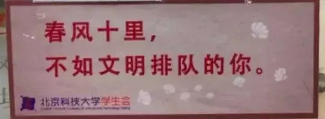 比如北京科技大学万秀食堂贴出的标语,直指插队、浪费等行为,看到这些,你还好意思插队吗?