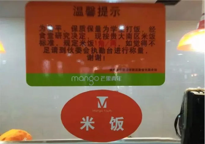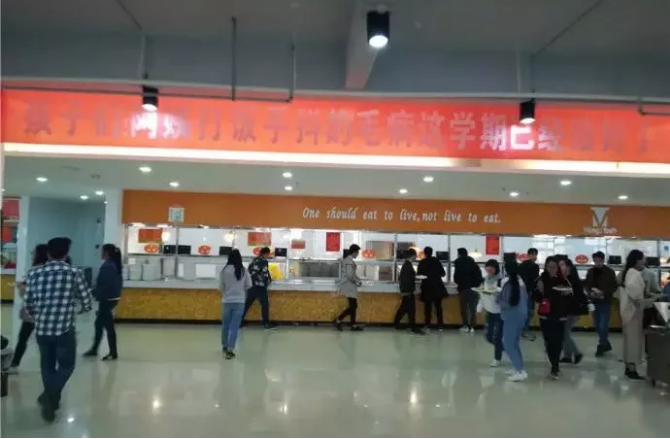 因为吃不饱,同学们纷纷向学校后勤部及食堂负责人反映。不久后,食堂便做出了改进,为了打消同学们的顾虑,食堂还专门制作了接地气的标语,挂在了食堂最显眼的地方。