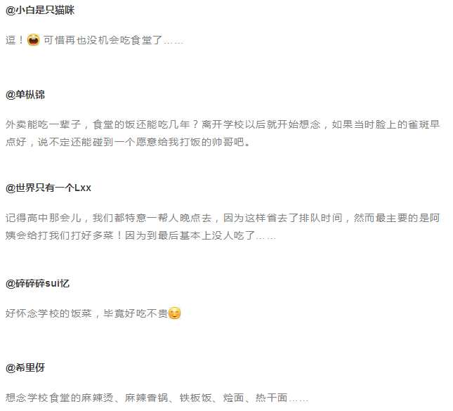 同时,也引起了一众网友的回忆杀,不管食堂饭菜如何,里面也满载着青春时期的酸甜苦辣……